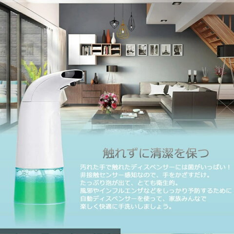 自動で出てくれるので、インフルエンザや花粉、汚れなど外から帰ってきた時や、 料理で生ものを触った後など直接触れずに手洗いができるのでディスペンサー自体が 汚れず、衛生的です。