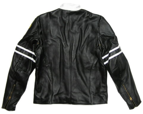 スタイル的には定番モデルBと同じくスタンダードなライダースジャケットですが、中央部の色を変えたり、スポンサードパッチを追加したりと、かなりレーサー仕様なデザインに仕上がっております。