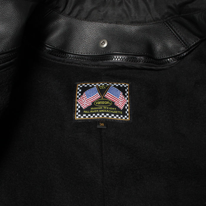 カラー:ブラック x ホワイト 素材:カウハイド(牛革)ミディアムウェイトレザー インナー生地:レーヨン100% 付属品:フリース・ジップアウトライニング ジッパー:VANSONオリジナルジッパー(シルバーカラー) 生産国:MADE IN USA 34 (着丈63 肩幅44 身幅47 袖丈66)cm 36 (着丈63 肩幅44 身幅51 袖丈66)cm 38 (着丈63 肩幅46 身幅53 袖丈66)cm 40 (着丈64 肩幅46 身幅54 袖丈67)cm 42 (着丈64 肩幅48 身幅57 袖丈67)cm およその実寸サイズです。