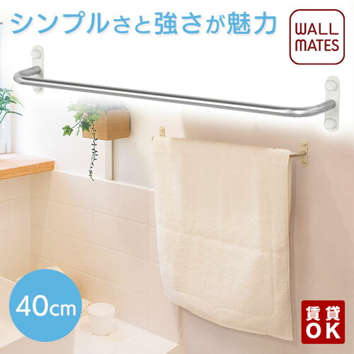 ウォールメイツ 正規品 壁付け パイプハンガー 40cm| タオル掛け タオルかけ タオルバー タオルハンガー 洋服掛け ハンガーかけ ハンガーフック ハンガーバー フック 洗面所 キッチン 取り付け 壁付 壁 石膏ボード ピン diy 賃貸 傷つけない おしゃれ 日本製