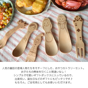 【P10倍/クーポン配布中!11日まで】 木製 カトラリーセット fairy(フェアリー) プリンセス お姫様 アリス 赤ずきん 女子会 誕生日会 パーティ 女の子 プレゼント ギフト 贈り物 姉妹 かわいい おしゃれ ウッド デザート おやつ 食育 ピクニック 食べやすい 離乳食