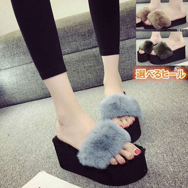 ウェッジソール サンダル 厚底 ストーム レディース もこもこ ファー ビーチ ふわふわ おしゃれ コンフォート フェイクファー 厚底 ウェッジソール サマー 大きいサイズ ブラック グレー ブラウン グリーン かかとなし 【22.5/23/23.5/24/24.5/25】di615s1
