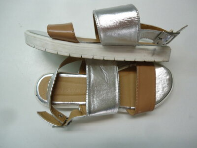 【中古】【あす楽可】☆McGREGOR(マックレガー)☆2ベルトフラットソールサンダル☆シルバー×ブラウン☆Lサイズ(24cm相当)☆ヒール高:約2.5cm☆安定感抜群♪☆バックストラップ