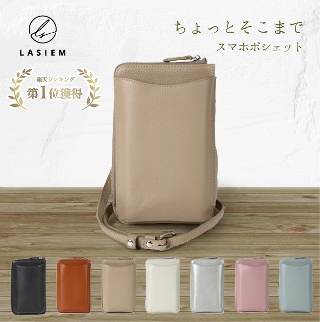 【楽天1位】LASIEM スマホポシェット 本革 レディース スマホポーチ スマホショルダーバッグ 皮 牛革 レザー 斜めがけ お財布ショルダー ミニショルダーバッグ 縦型 YKKファスナー iPhone スマートフォン 小銭入れ L字 おしゃれ 送料無料 プレゼント ギフト