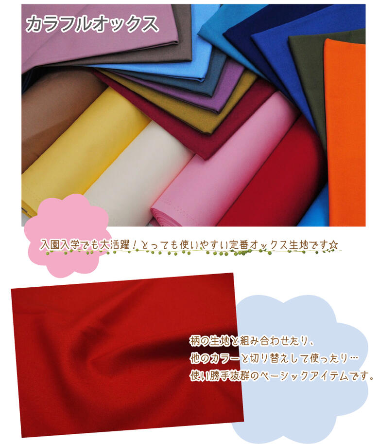 カラフルオックス 生地 無地 コットン 入園入学 男の子 女の子 シンプル バッグ 綿 布 日本製【5】